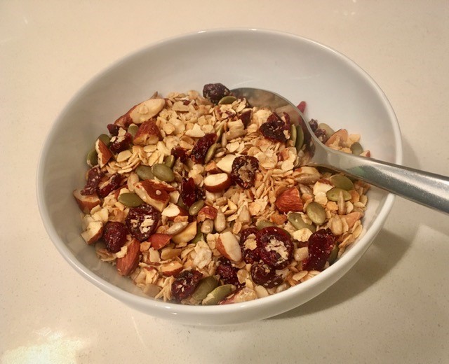 5) Spread the granola evenly over a baking tray and place on the centre rack in the oven.